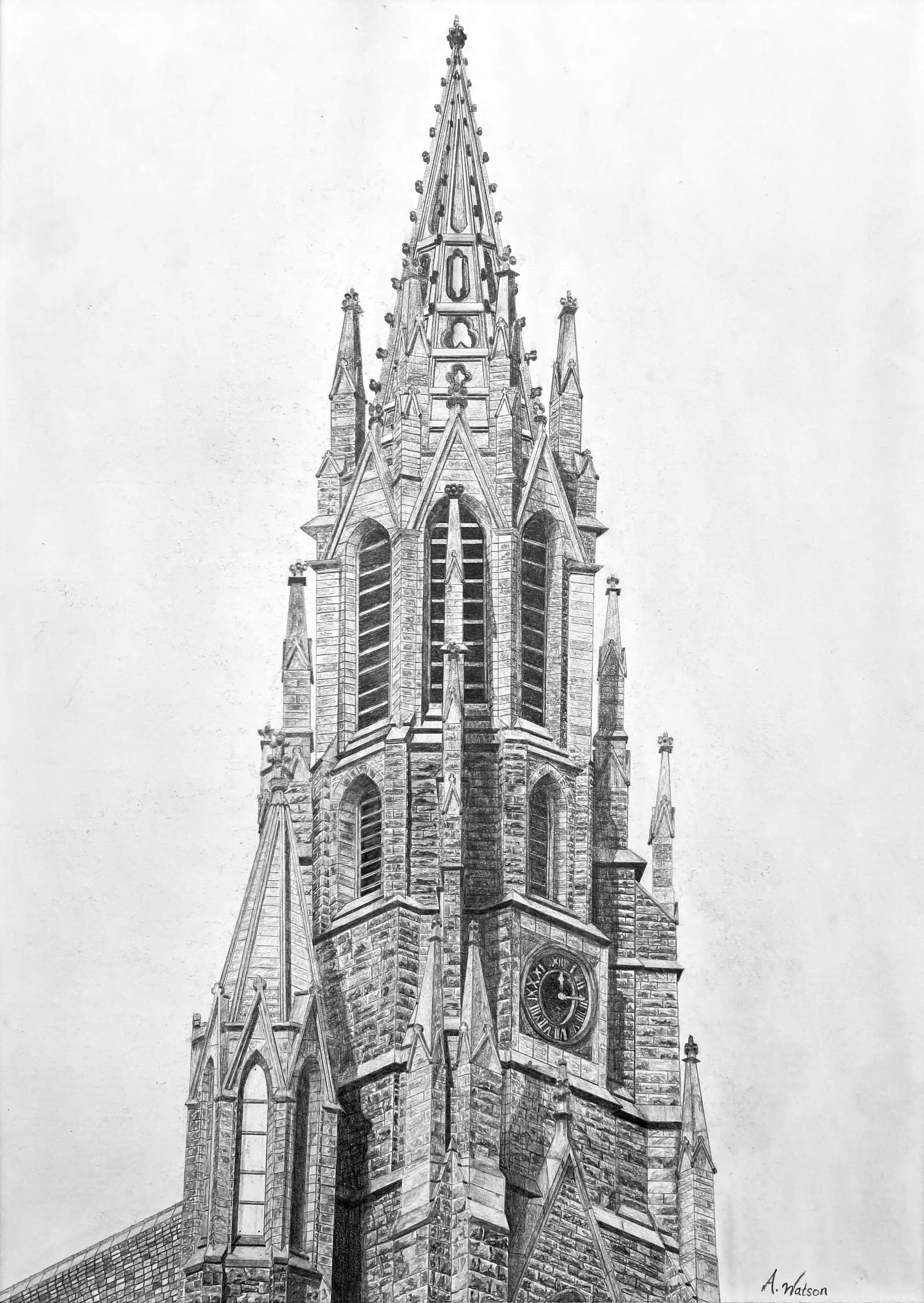 Please join me in admiring this beautiful drawing of our steeple by Andrew Watson.